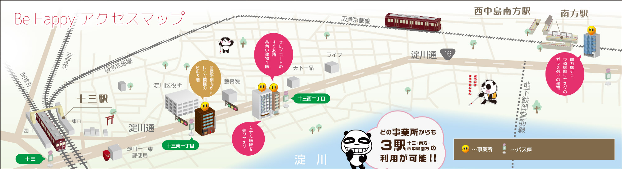 十三、南方からのアクセスも大変よく、またバス停のすぐ近くで便利です。
